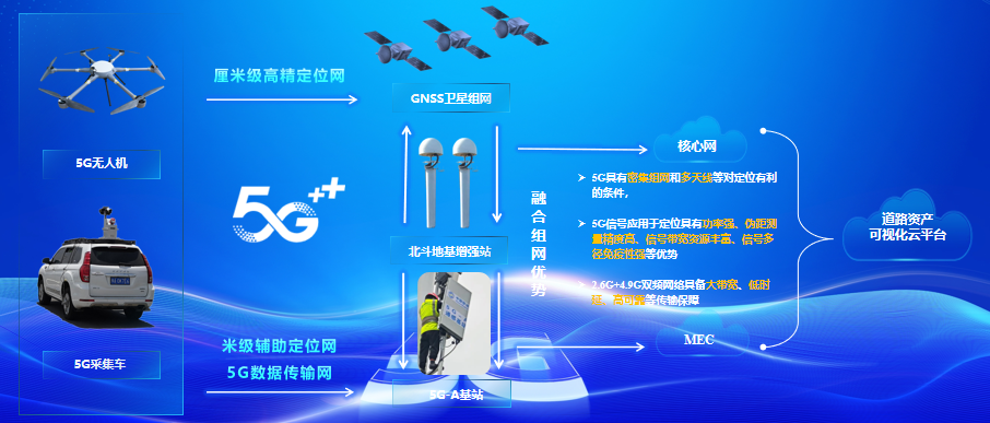 项目将5G-A、北斗融合组网定位技术和激光测绘、三维扫描等手段整合在一起,形成了一套高效、高精度的数据采集系统。扫描测绘数据通过5G-A网络实时传输至云端,结合全景拼接、自动提取、点云建模、GIS信息、数字孪生等技术,实现道路资产的三维可视化管理。