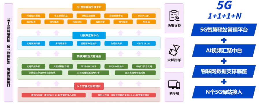 搭建统一的智能化驿站管理平台,利用5G网络+物联网传感设备,实现驿站智能化管理,5G网络为驿站的接入提供了强大的网络支持,通过5G的广覆盖和深穿透能力及高带宽和低延迟特性,实现视频流的实时传输和远程监控,提升数据处理和响应速度。